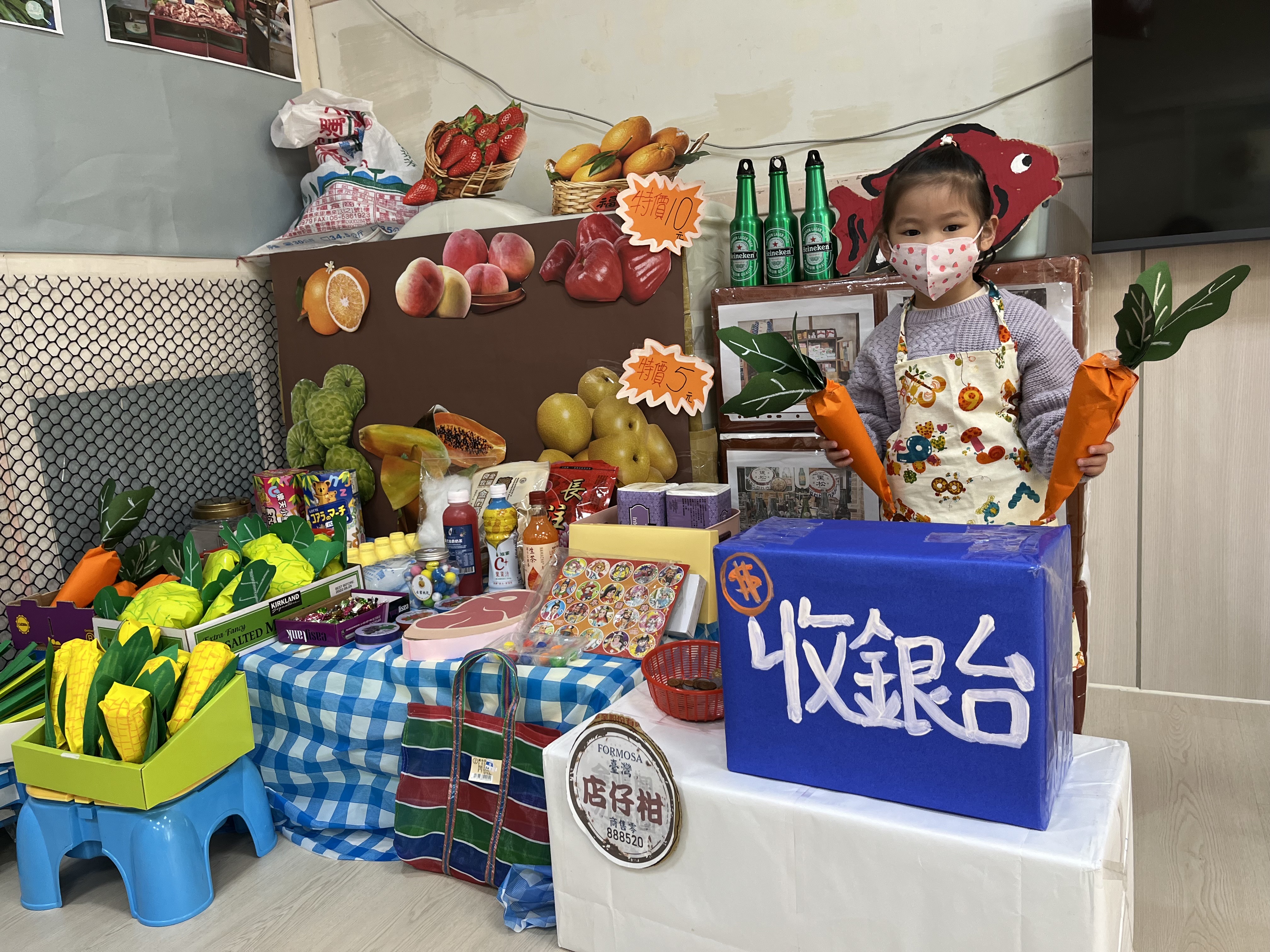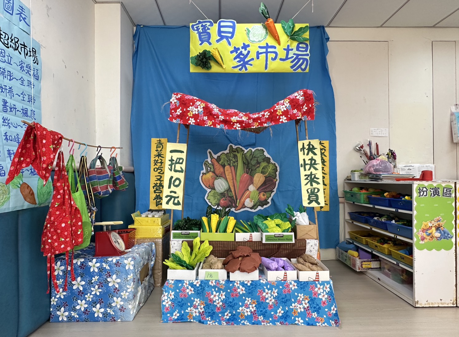 「扮演區」是幼兒的最愛,你當客人我當老闆,模仿起菜市場裡的買賣遊戲可愛極了!